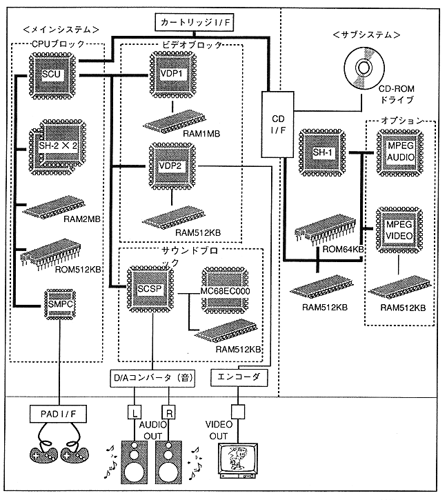 - The system configuration is equipped with a 32-bit RISC chip (SH-2) with a built-in DSP function in the main unit CPU, greatly improving the computing power (Figure 2.1).
