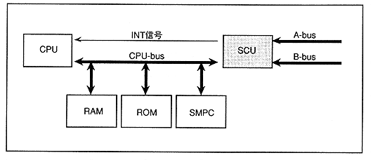 ∙ The SCU interrupt controller controls interrupts from A-bus, B-bus, and SMPC. Timer interrupts are supported, and interrupts (INT signals) can be generated in synchronization with the screen display (Figure 3.1).