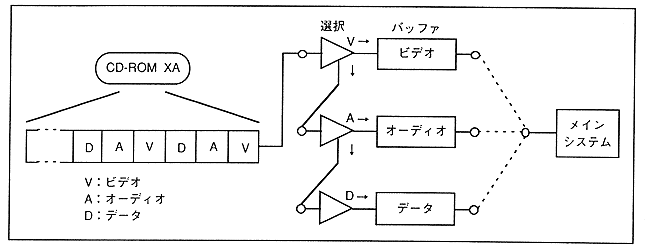 Data flow from the CD-ROM is called a stream. There are audio data, video data and program data in the stream. The stream selection mechanism selects the data type and sends the data to the main system and MPEG (Figure 3.30). The control contents of the stream selection mechanism are as follows: