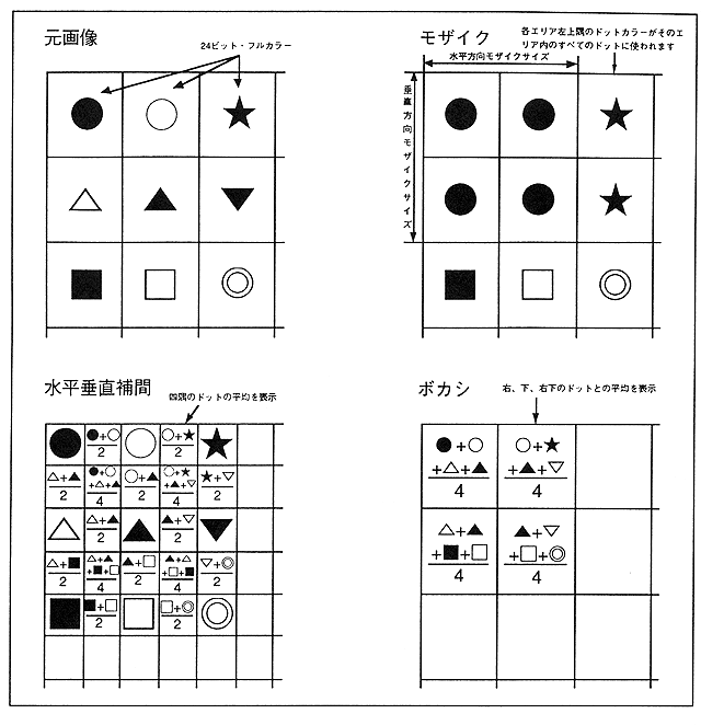 - The blur function is a function that displays the average of the color data of 4 dots that are adjacent in the horizontal and vertical directions, and can produce an effect of blurring a distant background.