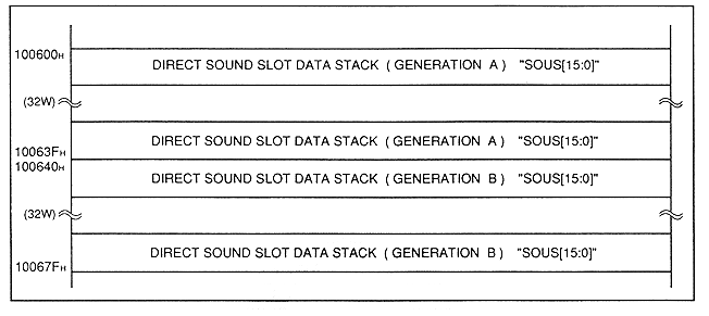 The sound data stack is an area for storing sound data. The sound data is composed of two generations (GENERATION A and B). Each generation can manage 32 sound data.