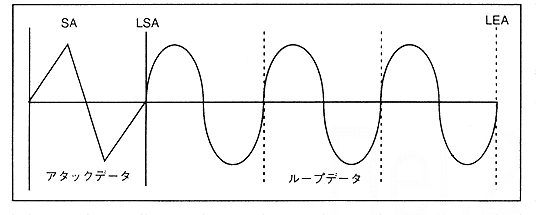 The FM speech synthesis method is applied to distort the waveform by changing the phase value with time. The FM speech synthesis method actually takes the method of adding the output values of other (possibly own) slots as a method of making the address pointer output value (phase value) non-linear. Up to now, the normal mode has been explained as an example. However, reverse loop and alternative loop can be set by changing the "LPCTL" register. The loop data that can be specified by the "LPCTL" register is as shown in Figure 4.25, Figure 4.26, and Figure 4.27.