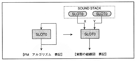 ∙ For the self-feedback type configuration like slot 0, it is necessary to connect the sound stack storing the output data of slot 0 to X and Y of the modulation input.