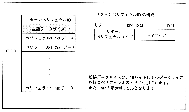 Peripheral data configuration is shown in Figure 3.12. Peripheral data consists of a Saturn peripheral ID and peripheral data. The actual size of the peripheral data excluding the Saturn peripheral ID is 255 bytes.