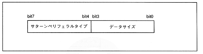 Saturn peripheral ID consists of peripheral type and data size. With the Saturn peripheral ID, you can recognize the configuration and contents of the peripheral data. The configuration of the Saturn peripheral ID is shown in Figure 3.15.