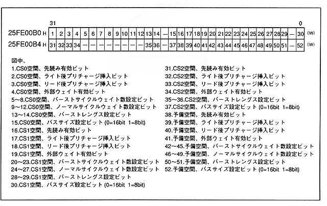 Figure 1.20 shows the map of A-Bus setting register. Each prefetch valid bit, precharge insertion bit, and external wait valid bit are invalid when 0 and valid when 1. Details are given in Chapter 3.