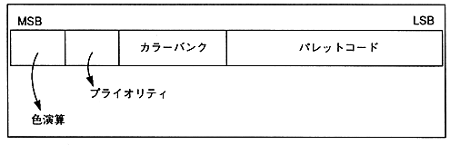 ∙ There are color bank method and RGB code method for expressing pixel color drawn (written) in the frame buffer. With the color bank method, 16, 64, 128, 256 colors can be expressed within one character, and with the RGB code method, 32768 colors can be expressed within one character.