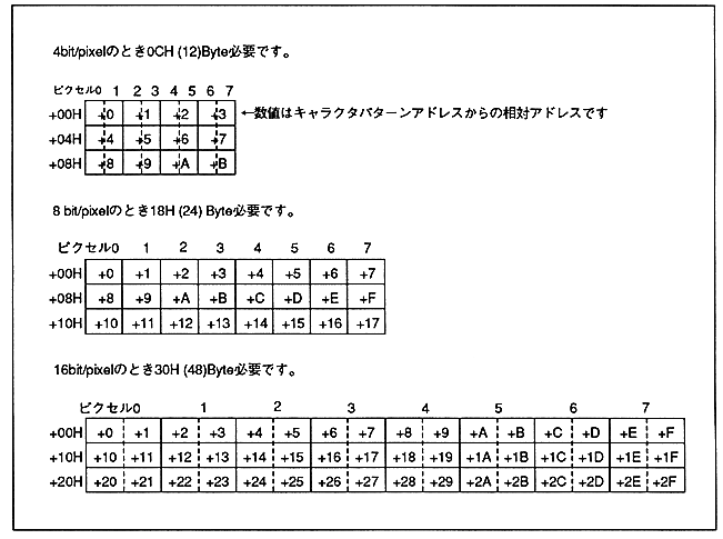 An example of a character pattern with a character size of 8 pixels wide x 3 pixels long is shown below.
