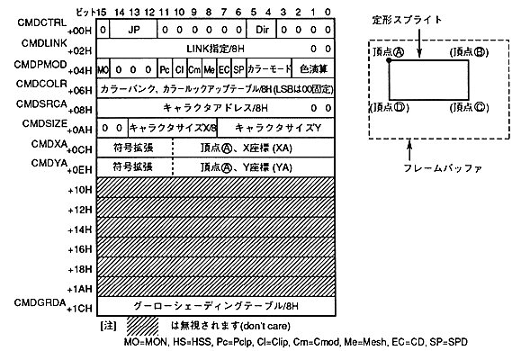 定 Standard sprite drawing command when the end bit is 0B and the command selection bit is 0000B. ¡Standard sprites cannot be rotated 90 °. If you want to rotate 90 degrees, use the sprite drawing command.