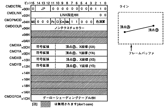 ∙ Line drawing command when the end bit is 0B and the command selection bit is 0110B.