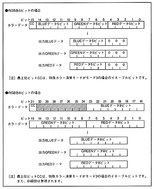 The configuration of color data on the color RAM is shown in Figure 3.9.