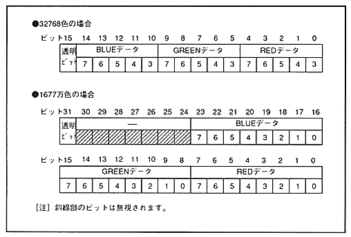 16.77 million colors | 32 bits / dot | MSB ( (Bit 31) is 0 |
