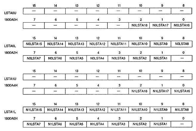 | N1LSTA15 to N1LSTA1 | 1800A6H | bits 15 to 1 | NBG1 (lower bits) |