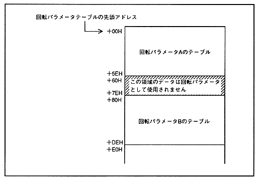 When storing two sets of tables, rotation parameter A and rotation parameter B, store the rotation parameter A table from the start address of the rotation parameter table, and then insert invalid data for 20H to rotate. Stores the table of parameter B. Rotation parameter tables do not always have to be stored in two sets, just the necessary tables. Figure 6.4 shows how to store two sets of tables, rotation parameter A and rotation parameter B.