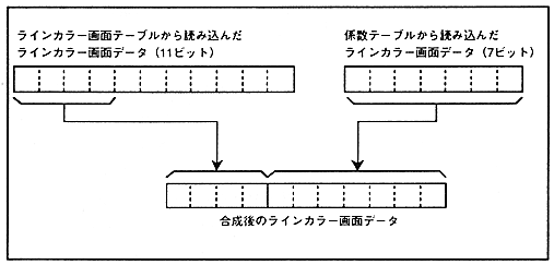 When the rotation parameter mode is specified as mode 0, the line color screen using the coefficient table of rotation parameter A is used. When mode 1 is specified, the line color screen based on the rotation parameter B coefficient table is used. When mode 2 is specified, the line color screen using the coefficient table of the rotation parameter A is used for both the rotation parameter A picture and the rotation parameter B picture. When mode 3 is specified, the line color screen using the rotation parameter A coefficient table is used for the picture using the rotation parameter A, and the line color screen using the rotation parameter B coefficient table is used for the picture using the rotation parameter B. . When RBG1 is displayed, the line color screen using the coefficient table of the rotation parameter A is used for both RBG0 and RBG1.