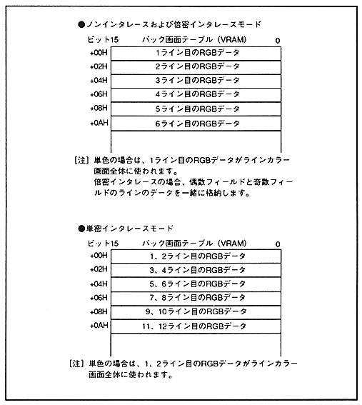 ∙ The structure of the back screen table for each interlace mode is shown in Figure 7.4, and the data structure on the back screen table is shown in Figure 7.5.