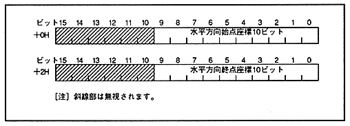 ∙ The bit configuration of the data stored in the horizontal start point and end point coordinate table (line window table) is shown in Figure 8.3.