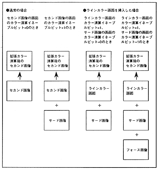 When performing extended color calculation, whether to add the third image and the force image depends on the color calculation enable bit of the third image screen, and whether to add the second image and the third image depends on the color calculation of the second image screen. Follow the enable bit.