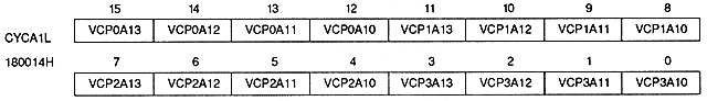 VCP1A00 to VCP1A03 | 180010H | bit 8 ~ 11 | For VRAM-A0 (or VRAM-A) timing T1 |