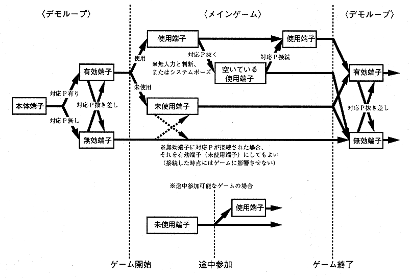 | ・ If the corresponding P is not connected to the terminal 1, do not start the game. ・ In principle, the main body terminal 1 corresponds to 1P operation, and the main body terminal 2 corresponds to 2P operation. |