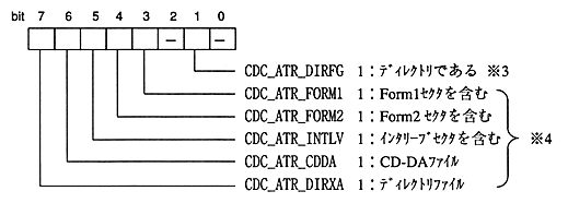 * 3: bit1 is the directory bit of the file flag in the directory record. Enabled when there is no system information in the directory record. (If there is system information, bit7 is prioritized for directory identification) * 4: Bits 3 to 7 are attribute information conforming to the CD-ROM XA standard. If there is no system information, bits 3 to 7 are all 0.