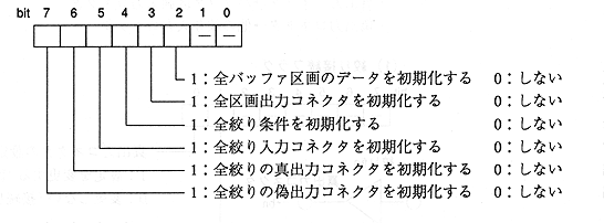 Initialization sets the following initial values for all selectors. -Buffer partition data: All will be erased. (All data in the CD buffer is erased.) -Partition output connector: All are unconnected. -Aperture condition: Same as initialization in aperture mode setting (CDC_SetFiltMode). -Aperture input connector: All are unconnected. -True output connector: The same number of apertures and buffer sections are connected. ・ Fake output connector: All are disconnected.
