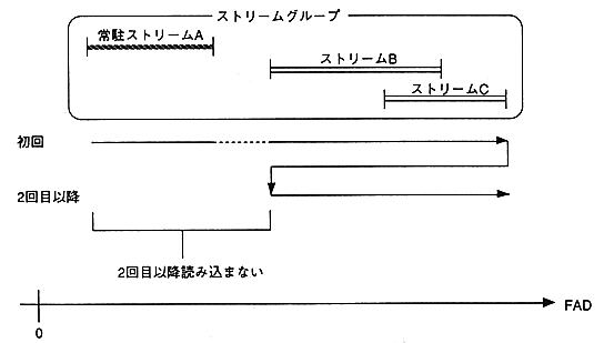- The file specified for the resident stream is read into the CD buffer only once. It is not read when returning to the loop start stream and repeating access. Therefore, the first time you access the stream, you must start playback before the file range of the resident stream.