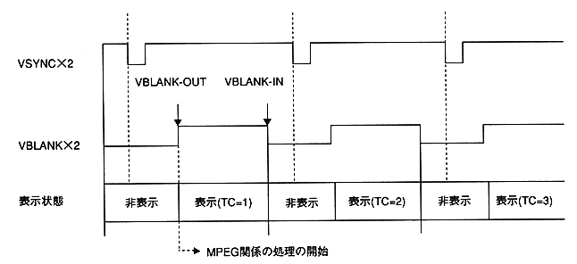Since it is difficult for the application software to obtain the VSYNC timing on this game machine, it is recommended to perform MPEG-related processing from the VBLANK-OUT timing.