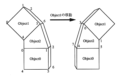 If you want to display Object2 deformed according to the movement of Object1 as shown below, Object2 which is a polygon between Object0 and Object1 By defining it as an object, you can automatically draw deformation.