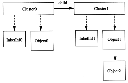 Each table of cluster, object, and inter-object connection polygon information is connected as follows.