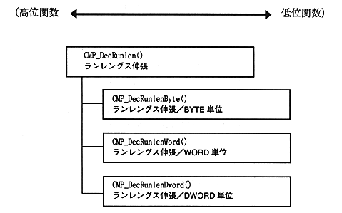 - The decompression library function has a hierarchical module structure in terms of functionality. The high-level functions are easy to use because they are decompressed by interpreting the compression algorithm and parameters, but have the disadvantage of being linked with extra object code.