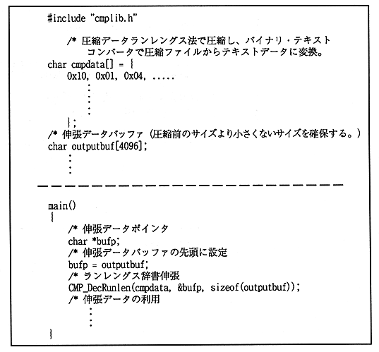 The following figure shows an example when compressed data is included in the source file in the form of a C language array.