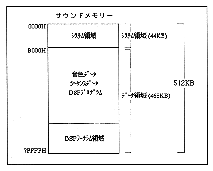 The program storage area and work area for operating the sound driver. The work area includes a program work for the sound driver and a system interface area for interfacing with the main system and sound development system. This area is a fixed area of 44KB and cannot be used for other purposes.
