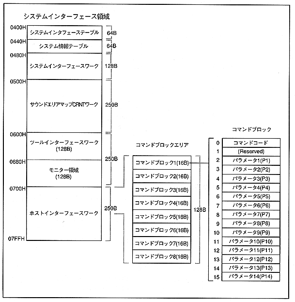 control command is issued to the following command block area. Write the command code and necessary parameters (P1--P14) in the 16-byte command block. Since there are 8 command blocks, up to 8 commands can be issued simultaneously.