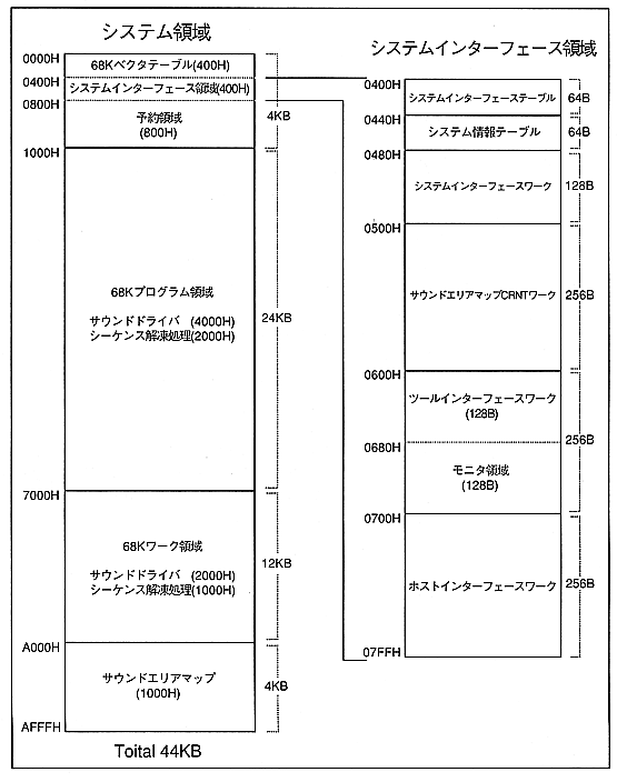 The system area is a fixed area for operating the sound driver provided by SEGA, and consists of five areas as shown in the table below. Above all, the system interface area is an important area for controlling all systems. The following section describes the details in the system interface area.