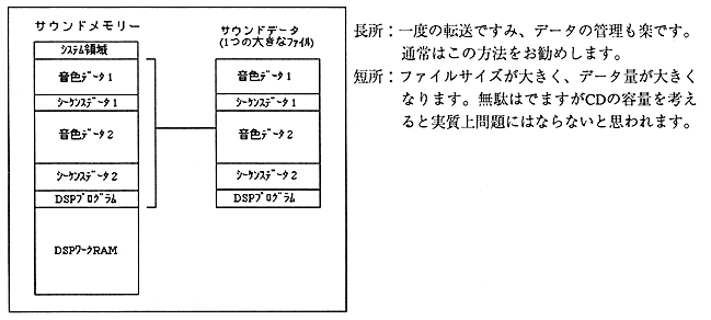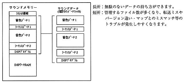 For the above reasons, it is recommended that sound data is usually held in one large file, and if the data is replaced, only the replacement data is stored as a separate data file.