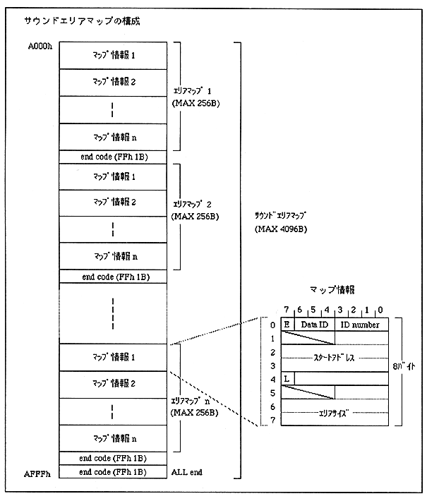 Each area map has a 1-byte end code (FFh) at the end, and an all-end code (FFh) at the end of the sound area map. The size of the sound area map is variable, and its size is determined by the number of area maps, but it can be up to 4096 bytes.