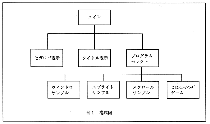 - This sample program is in the SEGAGAME directory. The sample program has the structure shown in Fig. 1. This is classified and explained as follows.