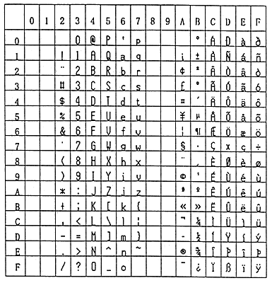 Table 1 Code table 1 (ASCII.FON)