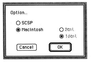 Select Option ... from the SCSP menu. The screen for setting the output and input destination devices appears.