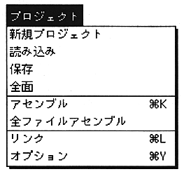 - The “Project” menu provides commands for managing project windows, executing assembly, and executing links.
