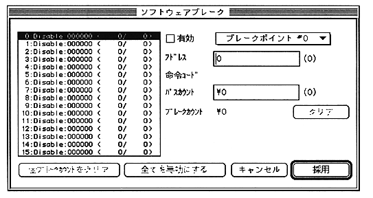 When “Software Break” is selected, the following movable modal dialog is displayed.