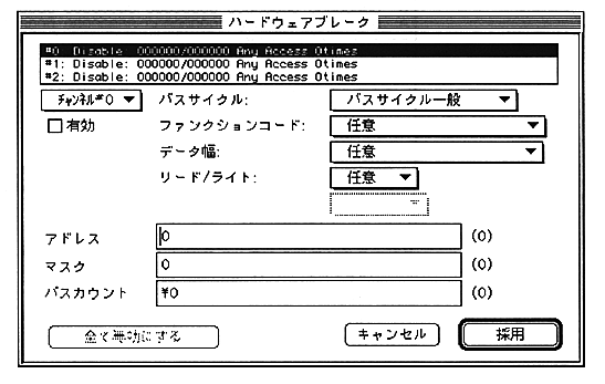 When “Hardware Break” is selected, the following movable modal dialog is displayed.