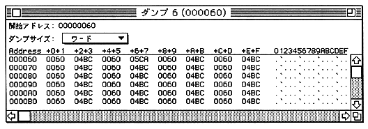 You can select the display size (byte, word, or longword) from the “Dump Size” pop-up menu.