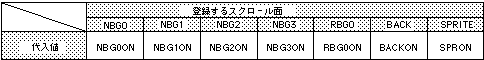 Sets the scroll plane affected by the color offset value set by the function “slColOffsetB”. In addition, multiple parameters can be concatenated by connecting multiple parameters using the or operator “|”.