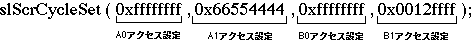 Set the cycle pattern for each bank. If each bank is divided, cycle patterns can be set for a and b and c and d. When the bank is not divided, cycle patterns can be set for a and c. For details on the values to be set, refer to “HARDWARE MANUAL vol. 2” VDP2 User Manual: P31 ~.
