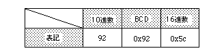 BCD code: 4-bit notation representing 0-9 (Example: Decimal 128 is 0x128 in BCD notation)