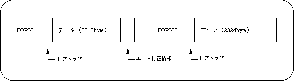 CD-ROM consists of units called sectors. In general, the sector is 2048 bytes (FORM1), but it may not be a problem even if it is read slightly wrong like music data. If you really want to secure the transfer capacity, you can use 2324 bytes (FORM2). I can do it. Each sector in the same file has sub-header information consisting of channel number, submode, and coding information. A simple representation of the sector structure is as follows.