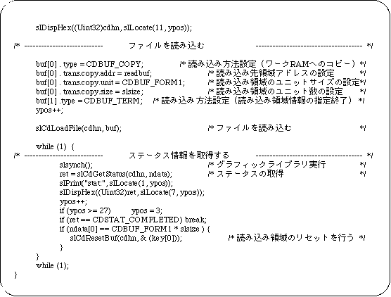 - Returns the data load destination corresponding to the “key” of the file handle to the beginning of the area specified by the function “slCdLoadFile”.