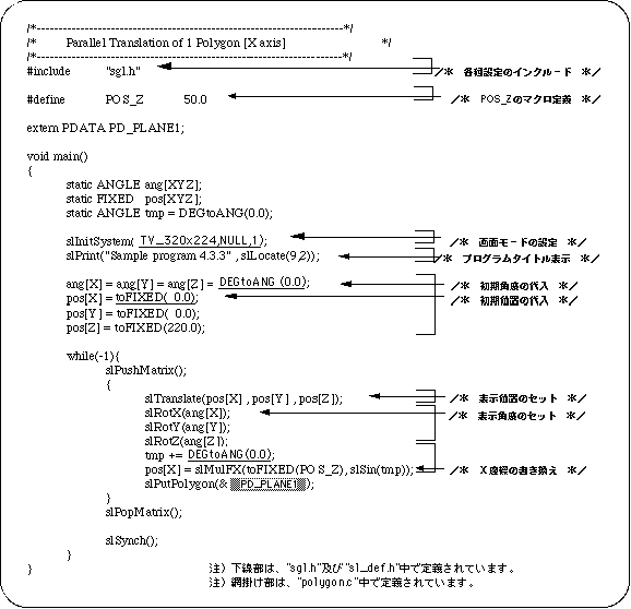 Listing 4-4 below uses the library function “slTranslate” to achieve translation parallel to the X axis. Sin value is used to control the movement parameter. The change of the angle value tmp controls the change of the X coordinate value.